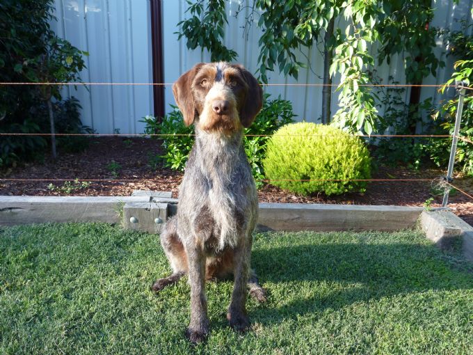 Summer is our first German Wirehaired Pointer. She has a lovely personality and is a very affectionate dog who loves to be by your side. She has an easy going nature and a great temperament. She is a very versatile and confident dog out hunting and loves to hunt all types of game, whether it be deer, duck or quail. Summer has had limited showing in the show ring and out of 6 shows she has won 4 BOB'S, 1 intermediate in group and 1 open in group.